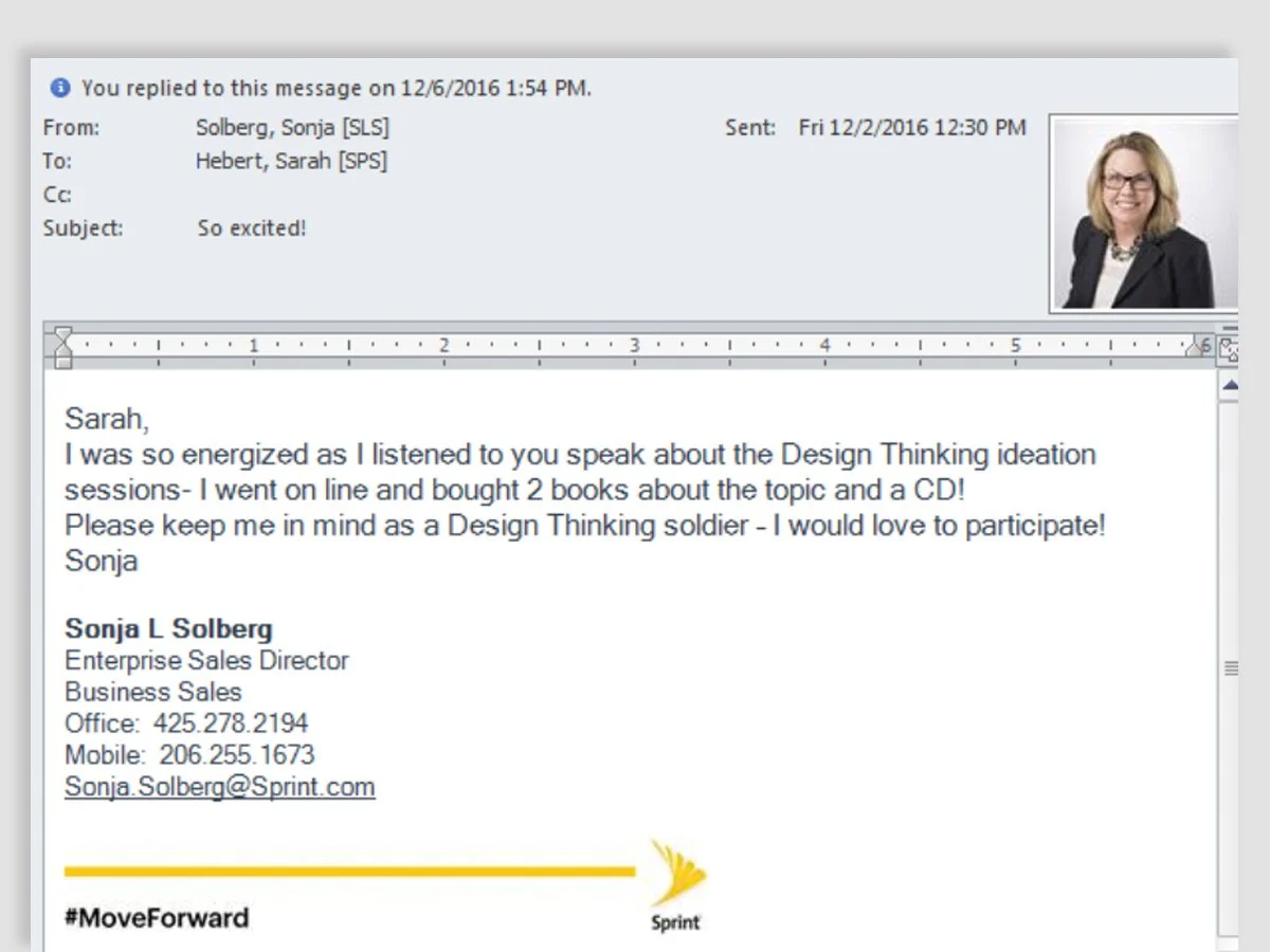 When Sprint hired a new head of customer experience, Brian Andrews, he realized there was a big gap in the way the company designed the products and experiences we brought to market. He wanted to focus on the combination of design and process improvement to bridge this gap. I stood up and launched the Catalyst Design Team at Sprint to support this effort.